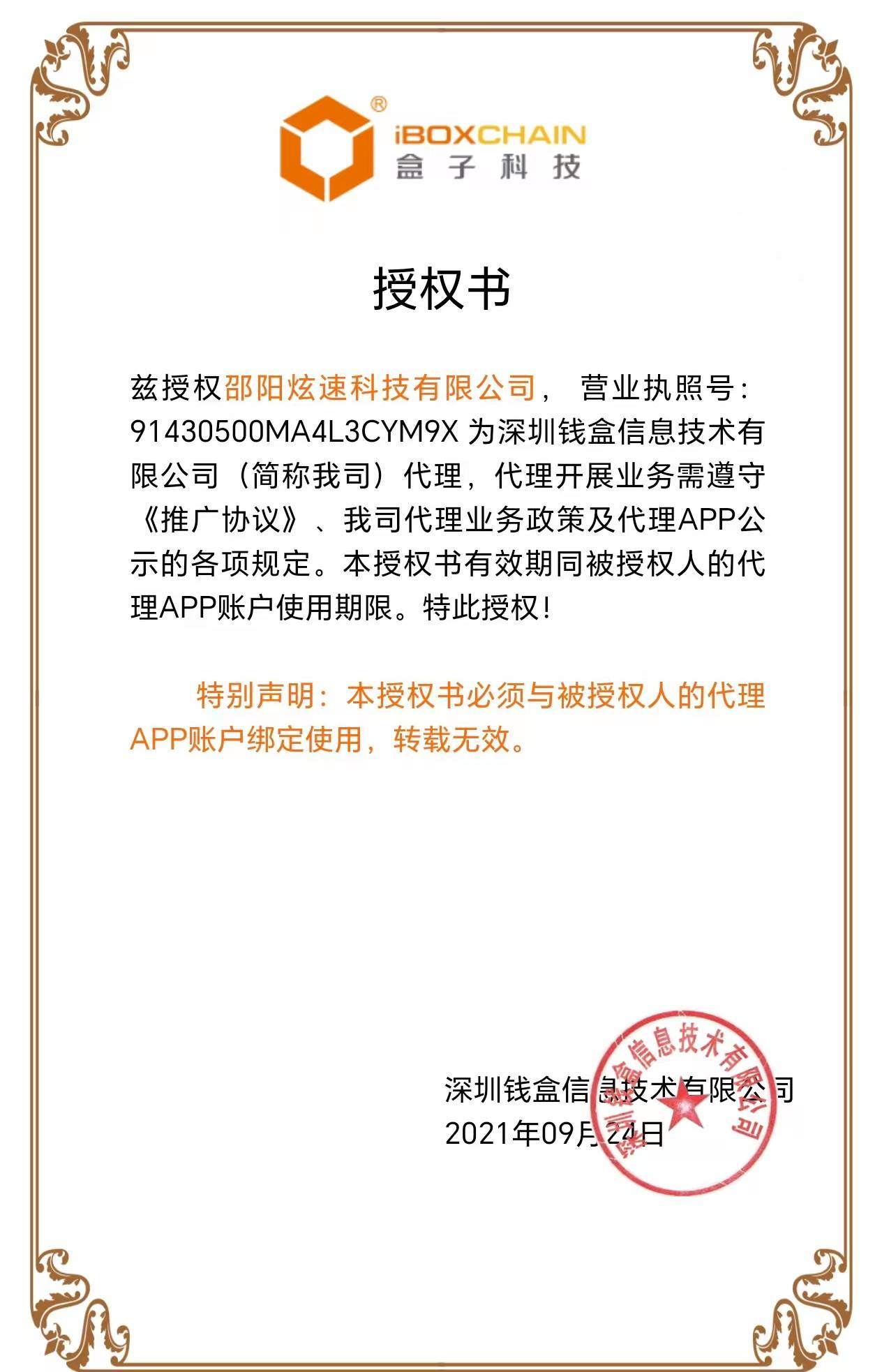 盒子支付-授權(quán)證書